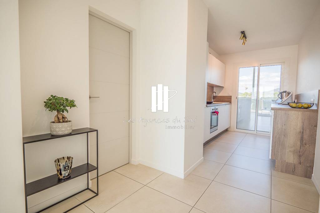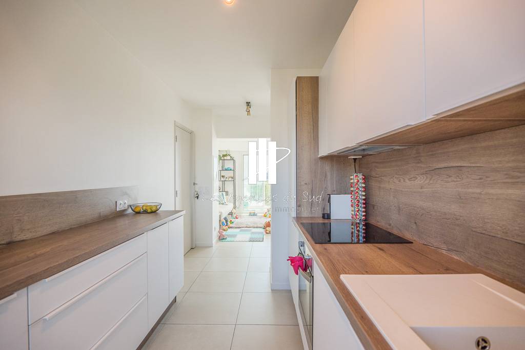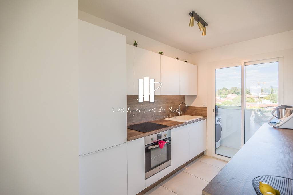 L'appartement est traversant côté sud avec un séjour lumineux ouvrant sur un balcon/loggia avec une vue dégagée. Côté nord, vous trouverez une cuisine toute équipée avec cellier et arrière cuisine.