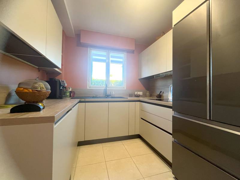 Vous apprécierez les prestations de qualité ainsi que les nombreux atouts pratiques : sur le même palier que l'appartement, un cellier privatif avec électricité, un garage électrifié et une cave complètent ce bien. Une place de stationnement extérieure peut également être acquise en supplément.