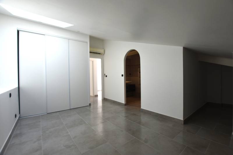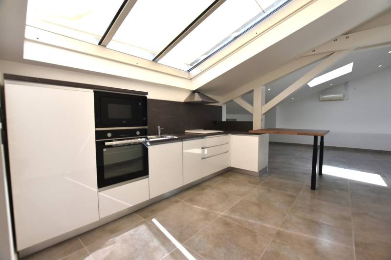 Boulouris Immobilier, membre du groupement des Agences Du Sud à Saint Raphaël qui comprend 7 agences immobilières vous proposent à la vente, en exclusivité, un appartement atypique sous les toits en plein centre ville dans une résidence fermée et sécurisée de plus de 90m² carrez, comprenant un hall d'entrée un grand séjour donnant sur une cuisine neuve et aménagée, une première chambre avec un grand placard une salle d'eau et un dressing, une seconde chambre avec une grande salle de bain ainsi qu'un dressing, le tout pour plus de 90m² carrez avec de nombreux rangements, une cave privative complète le bien,