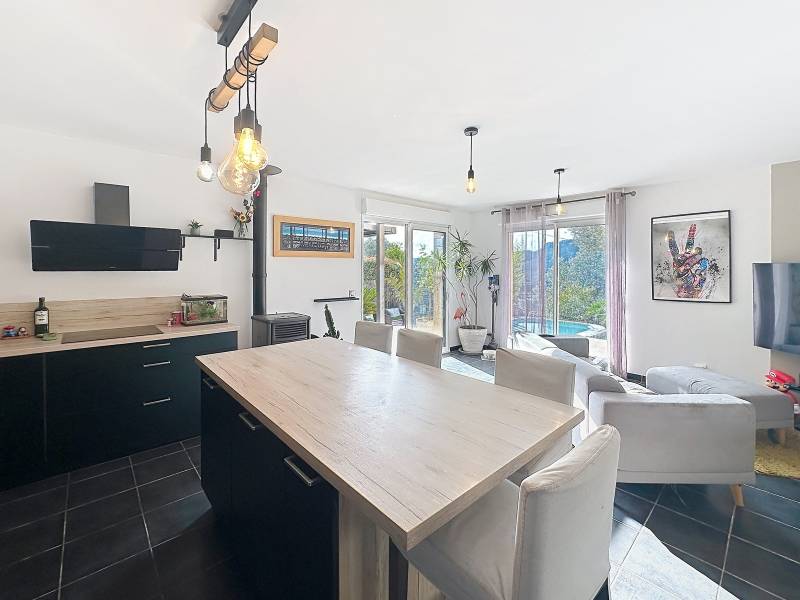 Édifiée sur un terrain clos de 760 m², cette maison d’environ 100 m² habitables séduit par sa fonctionnalité, sa luminosité et son agencement moderne.