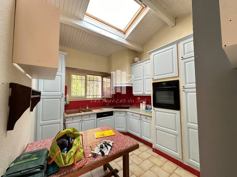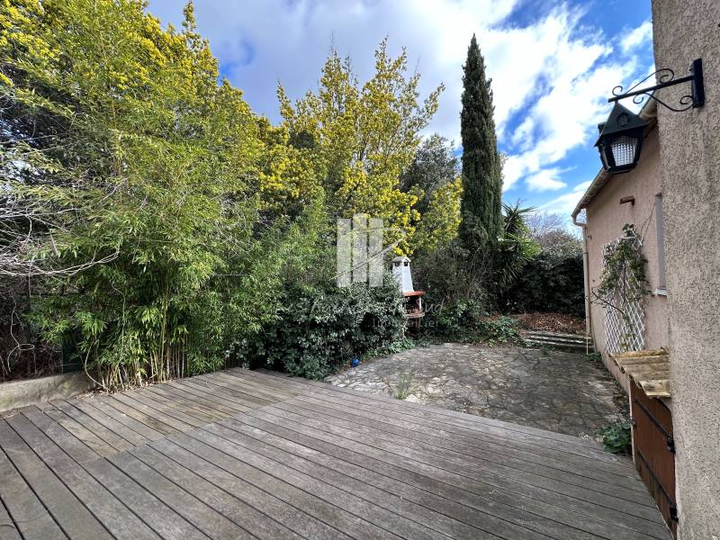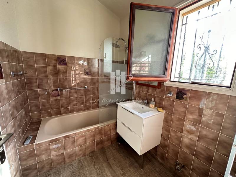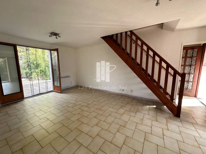 Les agences du sud - Agay Immobilier vous propose à la vente cette maison de 110m² avec un séjour de 25m², une cuisine indépendante, deux chambres de plain-pied dont une qui peut être totalement indépendante, idéale pour recevoir des invités ou faire un bureau. À l'étage, deux autres chambres vous attendent, dont une avec une vue dégagée sur un jardin méditerranéen.