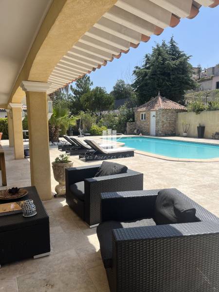 Agay Immobilier, membre du groupement Les Agences du Sud, vous présente à la vente cette superbe villa de 180m² de plain pied au style provençal édifiée sur un terrain de 1500m². Située au sein d'un domaine très prisé, vous serez charmés par ce paysage entre mer et montagne qu'offre la propriété. Mais également par ses beaux volumes, sa luminosité naturelle, son atmosphère chaleureuse et accueillante. La villa se compose d'une entrée, cuisine semi-ouverte avec cellier, séjour avec cheminée ouvert sur la terrasse et sa piscine 13 x 5. Côté nuit, vous retrouverez 4 chambres, 2 salles de bains dont l'une avec balnéo + douche et 2 WC indépendants avec lave mains. Cette villa des années 2000 est construite autour d'un patio, offrant une ambiance de vie intérieure et extérieure harmonieuse. La villa est équipée de la climatisation réversible et de double vitrage vous assurant un confort optimal. Elle bénéficie également d'un spacieux garage offrant un grand espace de stockage. La villa offre également la possibilité d'aménager un studio indépendant permettant une flexibilité supplémentaire pour accueillir des invités !
