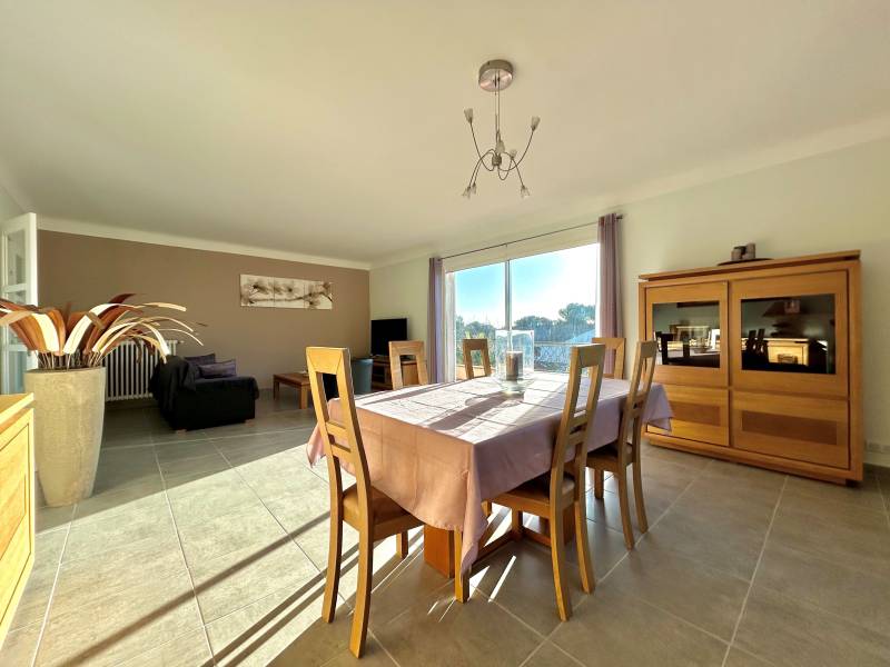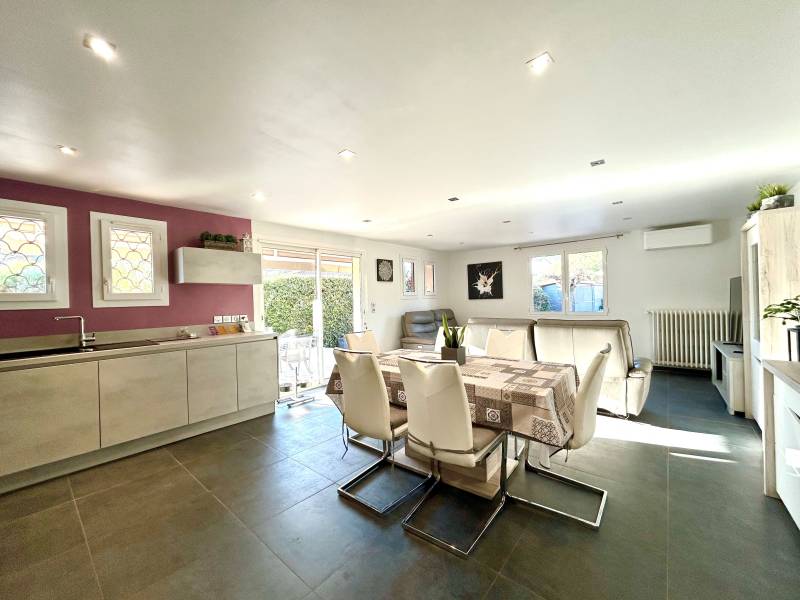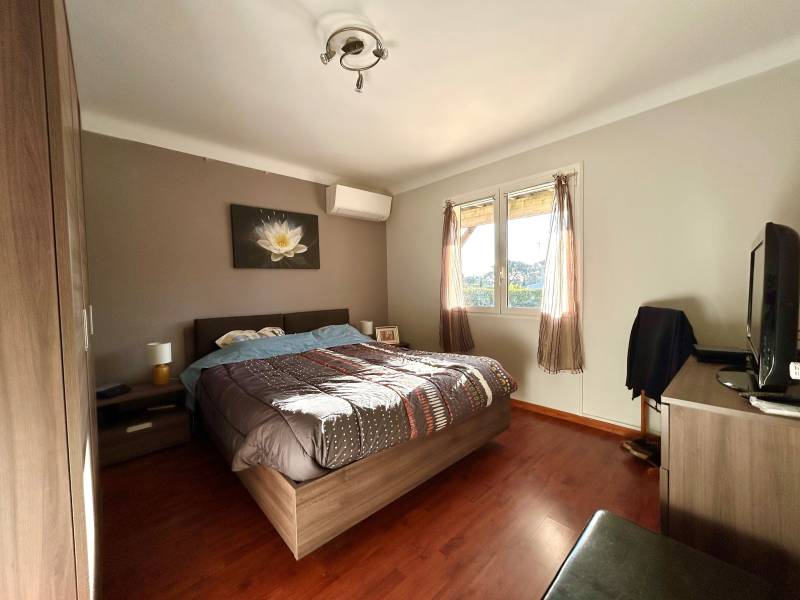 La maison dispose d'une vaste superficie de 214m². Elle se distingue par une disposition fonctionnelle : le rez-de-chaussée se compose d'un appartement comprenant une entrée, un séjour avec cuisine ouverte conviviale s'ouvrant sur une terrasse ensoleillée et un jardin accueillant, doté d'une piscine orientée plein Sud, trois chambres lumineuses, une salle d'eau et WC indépendant complètent cet espace.