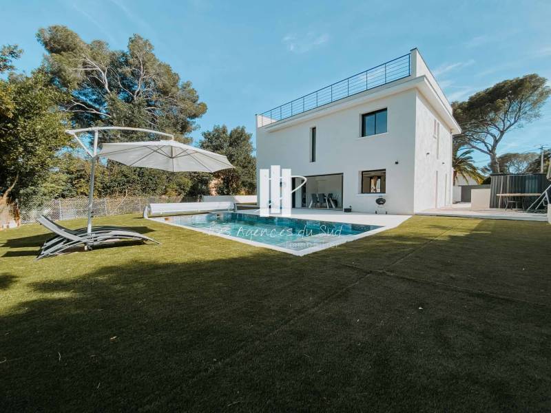 Votre agence Boulouris Immobilier, membre du groupement Les Agences du Sud, vous propose à la vente cette superbe villa à l'architecture contemporaine qui se situe au cœur du quartier très prisé de Boulouris à proximité de la mer au calme.