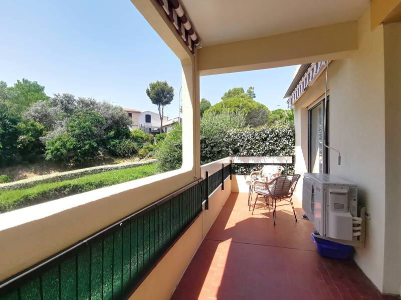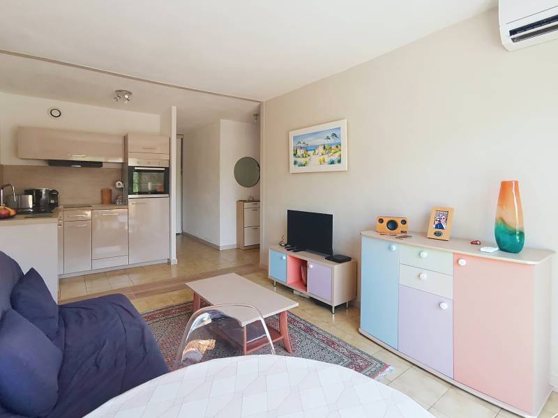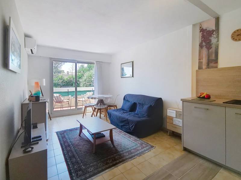Pour un confort optimal en toute saison, le logement est équipé d’une climatisation réversible. Le séjour et la chambre s’ouvrent tous deux sur une belle terrasse de 12 m², en partie couverte et équipée de stores, idéale pour profiter de moments de détente en extérieur, à l’abri du soleil.