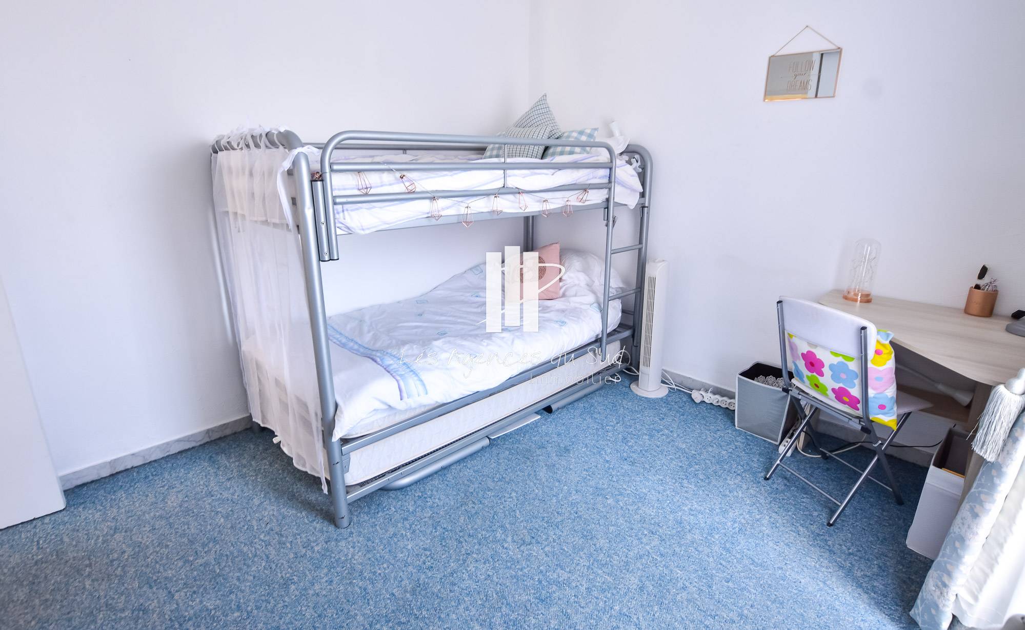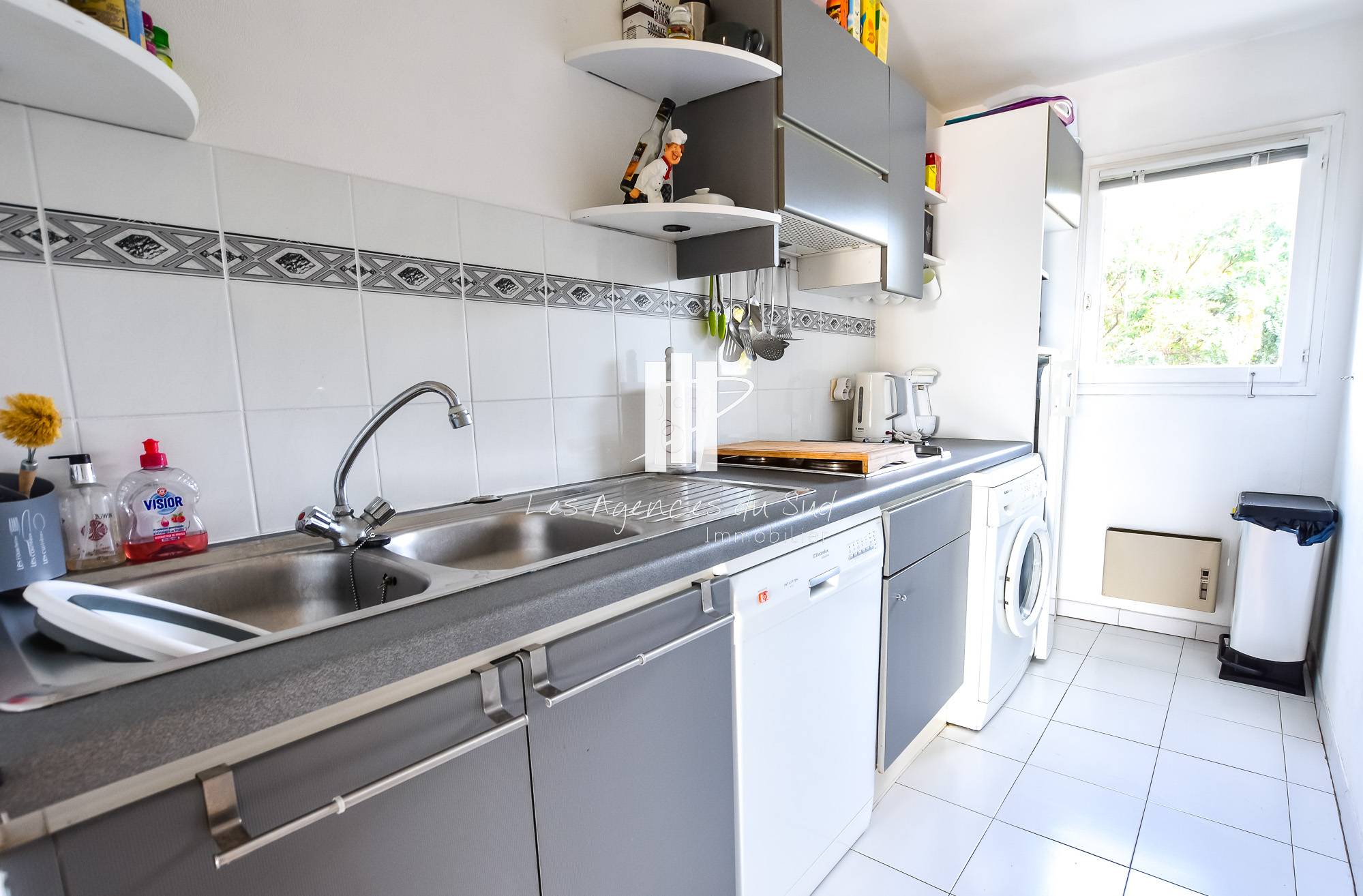 L'appartement est composé d'une entrée, d'une cuisine équipée, une salle de bain, deux chambres ainsi qu'un séjour donnant sur la terrasse exposée SUD. Aucun travaux à prévoir.