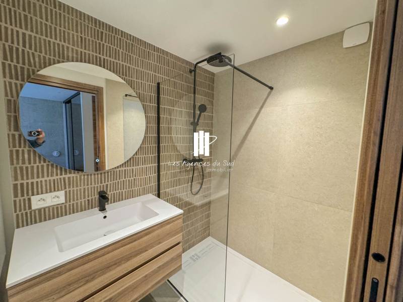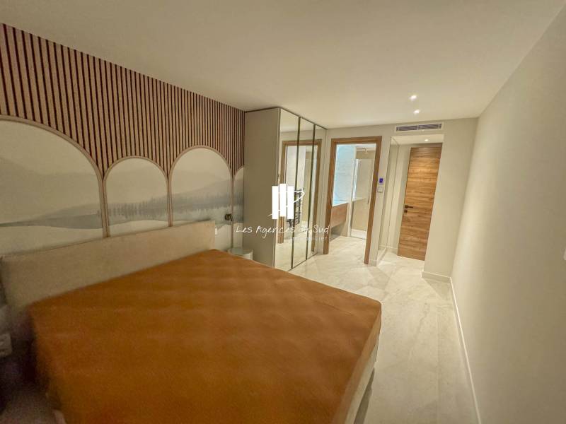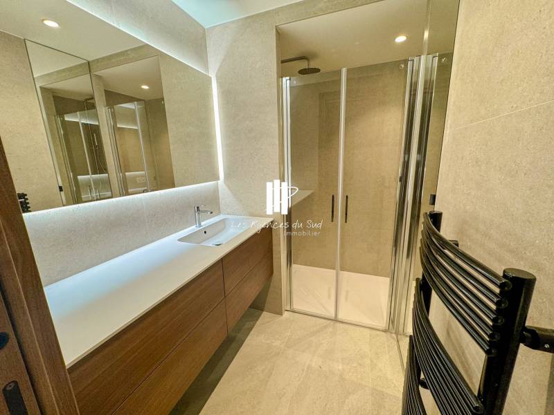 Entièrement refait à neuf par un architecte d’intérieur, cet appartement séduit par la qualité de ses prestations et son agencement contemporain. Il se compose d’une entrée élégante, d’un séjour lumineux, d’une cuisine moderne prolongée par une arrière-cuisine fonctionnelle, idéale pour le rangement. L’espace nuit offre deux véritables suites, chacune disposant de sa salle d’eau privative et de placards intégrés, garantissant confort et intimité.