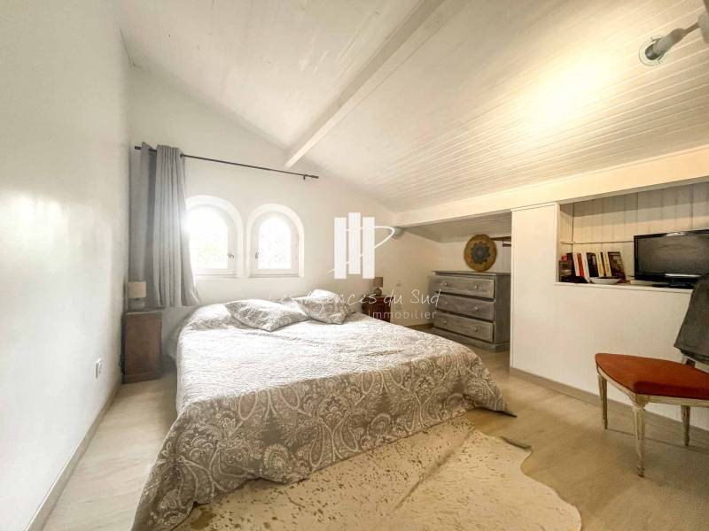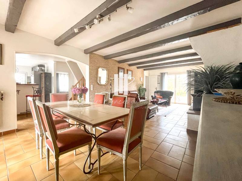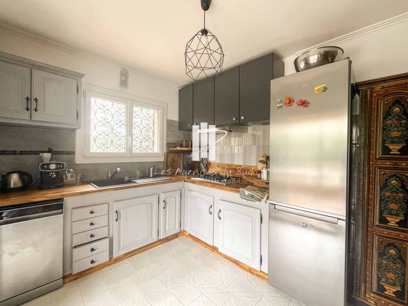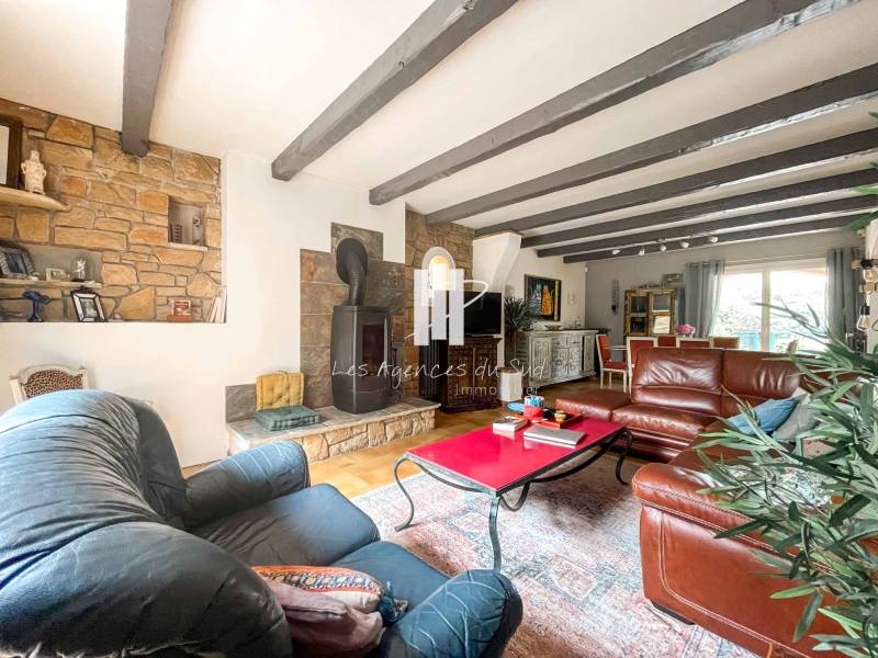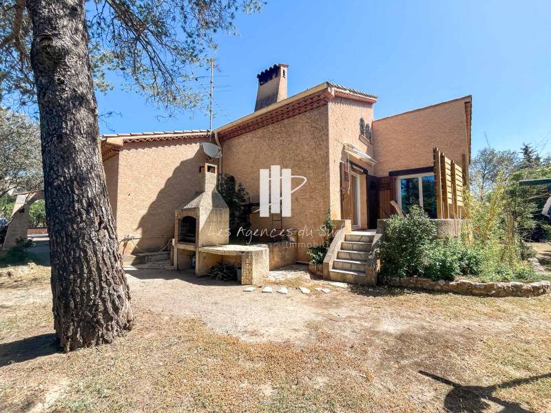 Votre agence Boulouris Immobilier membre du groupement d'agence Les agences du Sud, vous propose à la vente cette charmante villa de construction traditionnelle et rénovée il y a peu d'environ 130m2 édifiée sur un joli terrain plat et arboré avec piscine de 1120m2.