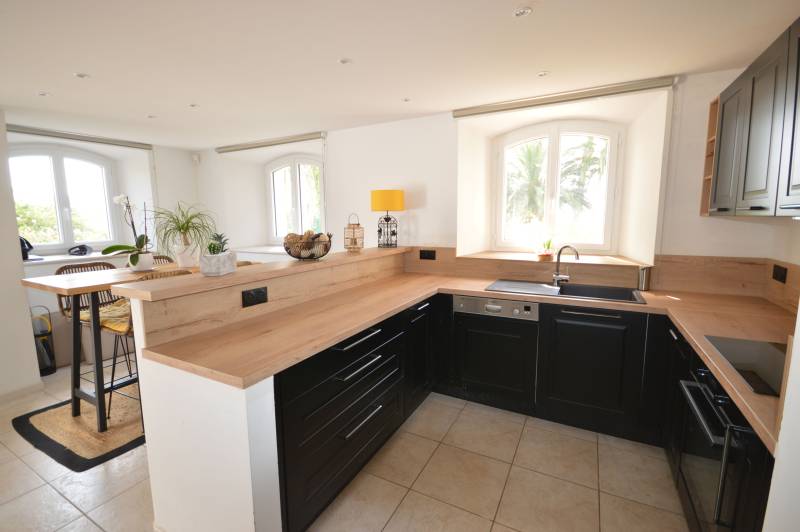 L'appartement entièrement rénové offre un bel espace de vie de 60m² environ avec une cuisine entièrement équipée et aménagée séparée par une jolie verrière, une suite parentale avec dressing, salle de bains et wc, une seconde grande chambre avec placard, une salle d'eau avec wc, un espace buanderie.