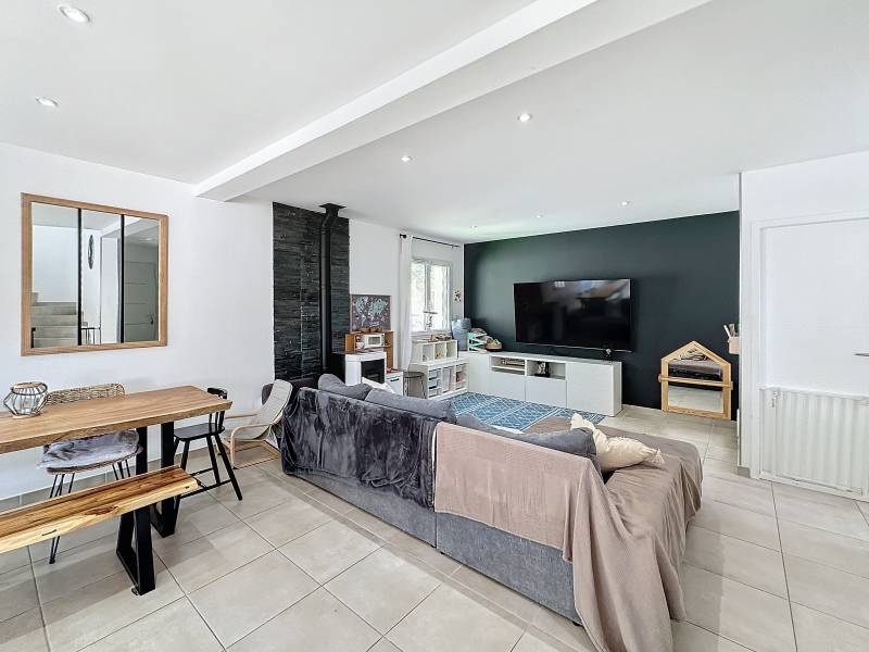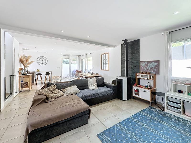 - Séjour : Vaste espace de vie lumineux, donnant sur la terrasse et le jardin, idéal pour profiter de la lumière naturelle tout au long de la journée.