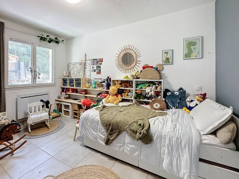Les Agences du Sud - Côté Demeure immobilier vous propose cette superbe villa contemporaine de construction récente, idéalement située dans le pittoresque village de Bagnols-en-Forêt. Offrant un cadre de vie paisible et verdoyant, cette propriété de 120 m² est implantée sur un terrain de 720 m² env. entièrement clôturé et aménagé.