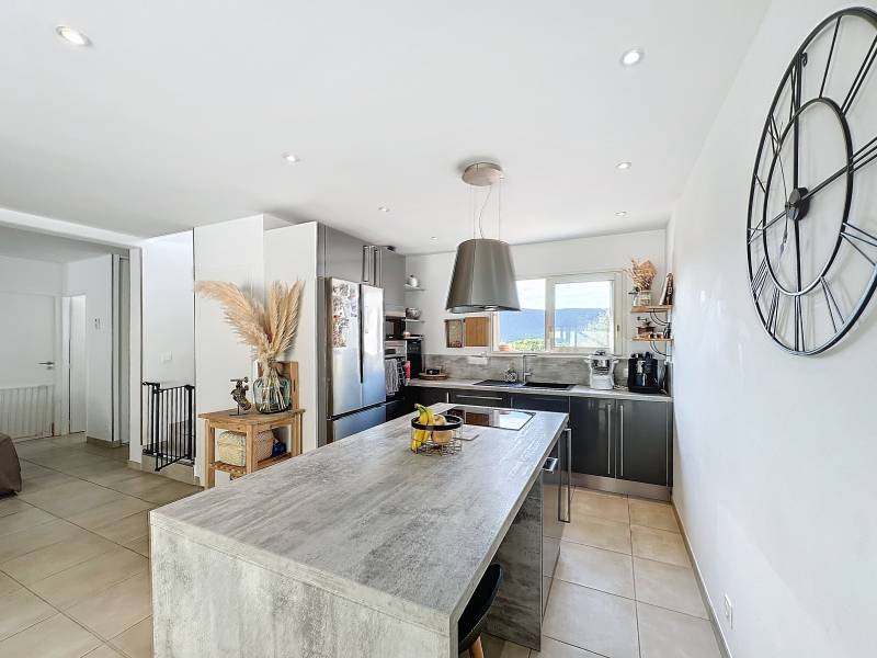 - Cuisine américaine : Moderne et entièrement équipée (électroménager de qualité), ouverte sur le séjour, avec un îlot central et un coin repas.
