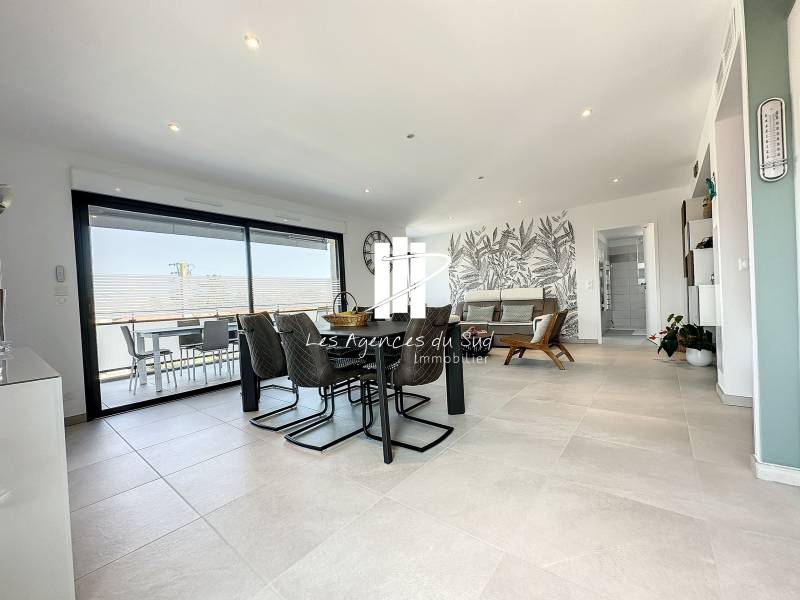 Les Agences du Sud - Côté Demeure Immobilier vous propose dans une résidence de standing de seulement 7 lots principaux, un appartement de 3 pièces de 88m² situé en dernier étage. En effet, cet appartement neuf (livré en 2022), comprend une vaste entrée donnant sur un séjour double avec cuisine ouverte équipée de 45 m² env. On retrouve 2 belles chambres avec dressing et salle d'eau ainsi que 2 terrasses. La situation est idéale, entre la Base Nature et Port Fréjus, cette résidence est sécurisée et au calme. Vous retrouverez un triple garage avec porte sectionnelle vient compléter cet appartement. Les prestations modernes et son emplacement pourront que vous séduire. A visiter sans tarder. Retrouver toutes nos annonces sur www.agencesdusud.com