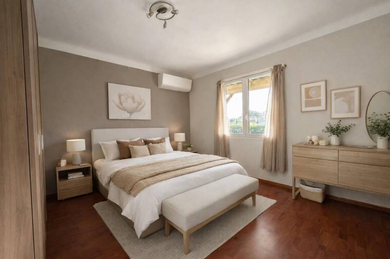 La pièce de vie s’ouvre sur une magnifique terrasse en travertin, exposée plein sud, sans aucun vis-à-vis. Un véritable havre de paix, parfait pour profiter du soleil, organiser des repas en extérieur ou simplement se détendre. Cerise sur le gâteau : un accès direct à la piscine, un atout exceptionnel pour savourer pleinement les beaux jours.