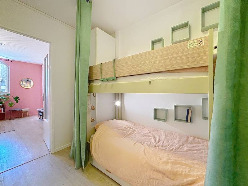 L’appartement se compose d’un séjour lumineux avec possibilité de couchage, d’une chambre confortable équipée d’un lit double, ainsi que d’un espace optimisé avec lits superposés, idéal pour maximiser la capacité d’accueil. Climatisé, il garantit un confort optimal en toute saison. Vous profiterez également d’une belle terrasse de 8,5 m², parfaite pour vos moments de détente en extérieur.