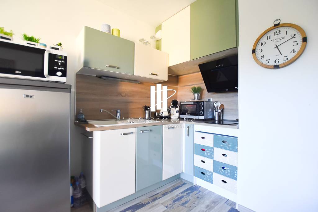 Vous ètes à la recherche d'un appartement proche des commerces et de la plage à Saint-Raphaël, que ce soit pour une résidence principale, un investissement locatif ou une résidence secondaire ne cherchez plus ! Votre agence Boulouris Immobilier membre du réseau Les Agences du Sud vous propose à la vente ce beau studio cabine entièrement refait à neuf avec terrasses Sud et idéalement situé en plein centre du quartier très recherché de Boulouris, vous permettant d'accéder aux commerces, transports et plages en moins de 5minutes à pied. L'appartement est composé d'une entrée donnant sur coin nuit avec rangements, une salle de bains avec WC, un agréable séjour avec cuisine américaine entièrement équipée donnant sur une charmante terrasse exposée sud à la vue dégagée. L'appartement est vendu entièrement meublé et avec une place de parking privative au sein de la résidence sécurisée. Pour visiter ce chamant studio cabine situé juste en face de la plage à Boulouris contacter sans plus attendre votre agence Boulouris Immobilier.