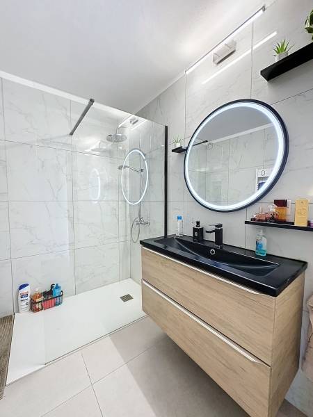 Une salle d’eau moderne avec superbe douche à l’italienne et meuble vasque design