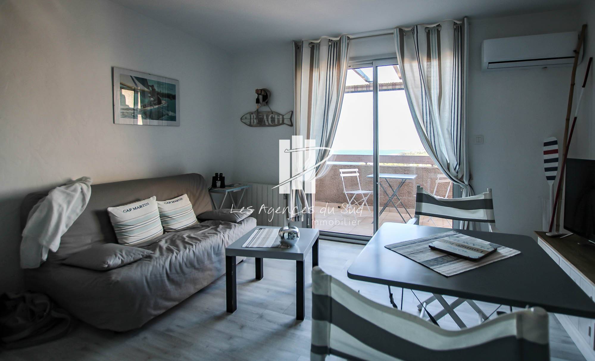 Votre agence immobilière Corniche d'Or Immobilier, membre du groupe immobilier Les Agences du Sud à Saint-Raphaël, vous présente ce superbe appartement vue mer, idéal pour un pied à terre !