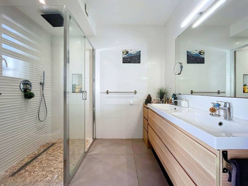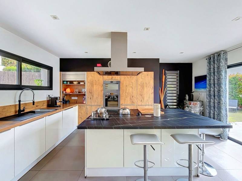 Les prestations techniques sont à la hauteur du confort attendu ; volets roulants motorisés et centralisés climatisation réversible dans chaque chambre ainsi que dans la pièce de vie, plancher chauffant et rafraîchissant, chauffe-eau thermodynamique et panneaux solaires de 3 kW pour plus d’efficacité énergétique et recharger votre voiture électrique gratuitement.